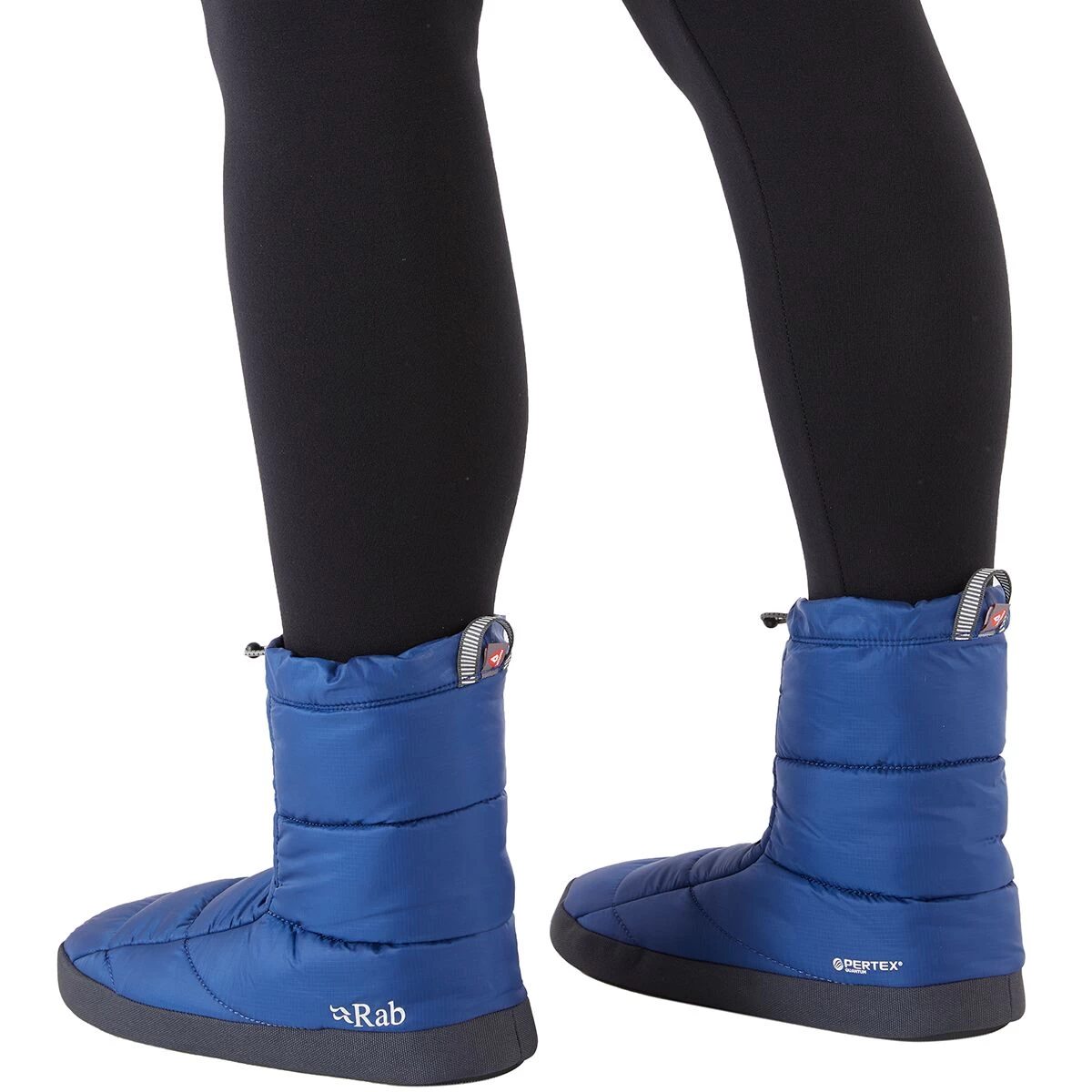 The Rab Cirrus Hut Boot gives our tired feet sweet relief after a day of skiing, mountaineering, climbing, or when we are sitting by the fire on a cold winter night. The boot cocoons our feet from toes to ankles in lightweight and packable 100% recycled synthetic insulation that looks and feels like down, but resists water and retains its shape.